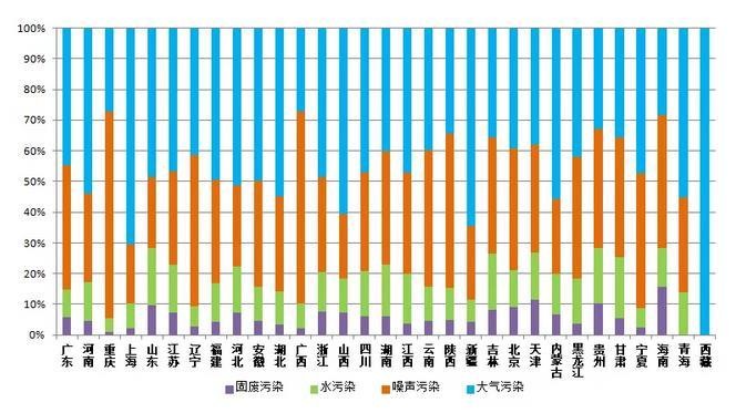 大气污染举报中,反映恶臭/异味的举报***多,占涉气举报的34.4%,其次为烟粉尘和工业废气的举报,分别占涉气举报的32.1%和19.0%。噪声污染举报中,反映建设施工噪声污染的举报***多,占噪声举报的41.6%,其次为反映工业噪声的举报,占28.8%。水污染方面,反映工业废水污染的举报***多,占涉水举报的49.3%。